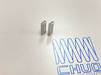 プラチナφ0.03を使用したばねをはじめとし、0.045×0.045角の素材で加工したばねを展示致します。