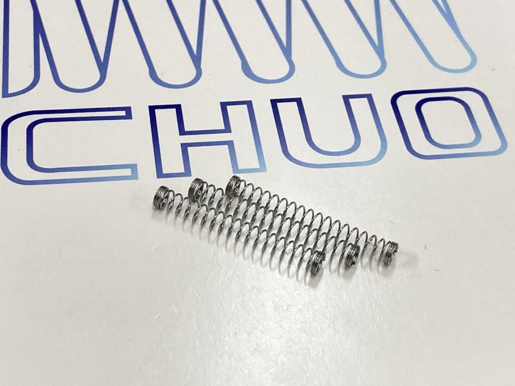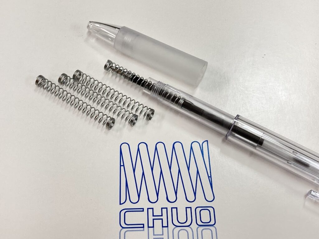 ボールペンノックばねは、ノック機構内部に組み込まれる圧縮コイルばねで、芯の出し入れを制御する役割を持つ。適度な反発力と復元性が求められ、連続した動作でも安定した性能を維持する必要がある。小型ながら操作性に直結する重要な部品となる。